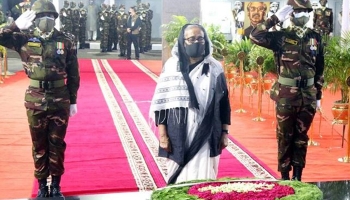 বঙ্গবন্ধুর প্রতিকৃতিতে প্রধানমন্ত্রীর শ্রদ্ধা