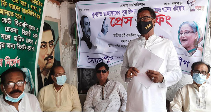 এতে লিখিত বক্তব্য পাঠ করেন সৈয়দপুর পৌর আওয়ামী লীগের সাধারণ সম্পাদক মোঃ মোজাম্মেল হক। এছাড়াও রাজাকার পুত্র দিলনেওয়াজ খানের চাঁদাবাজি ও সংগঠন বিরোধী বিভিন্ন ফিরিস্তি তুলে ধরেণ উপজেলা আওয়ামী লীগের সভাপতি (ভারপ্রাপ্ত) মোঃ রফিকুল ইসলাম বাবু বলেন, চতুর ওই রাজাকার পুত্র দীর্ঘদিন থেকে স্থানীয় আওয়ামী লীগ ও এর অঙ্গ সংগঠনের পদ-পদবী বাগিয়ে চাঁদাবাজি, মাদক ব্যবসা, সন্ত্রাসী কর্মকান্ড, সংখ্যালঘুদের সম্পত্তি জবরদখল ও রেলওয়ের কোয়াটার বানিজ্যসহ নানা অপকর্মে জড়িয়ে দলের ভাবমূর্তি ক্ষুন্ন করে আসছে।