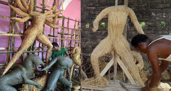 এ উপজেলায় পূজা মণ্ডপ গুলোতে প্রতিমা গড়ার প্রাথমিক কাজ শুরু হয়েছে। এতে ব্যস্ত সময় পার করছেন শিল্পিরা। আবার কোথাও কোথাও চলছে প্যান্ডেল তৈরির প্রাথমিক কাজ।সরেজমিন, উপজেলার বাঙ্গালীপুর ইউনিয়নে চৌমুহনী বাজার, বোতলাগাড়ীর কালিতলা, কাশিরামের পালপাড়া, শহরের কয়ামিস্ত্রীপাড়া, হাতিখানা মাছুয়া পাড়া ও কেন্দ্রীয় পূজা মন্ডপ শহীদ তুলসিরাম সড়কে দেখাগেছে প্রতিমা তৈরীর কাজ। শিল্পীরা প্রাথমিকভাবে বাঁশ,খড় ও মাটির কাজ শুরু করেছে। কোথাও কোথাও মাটির প্রলপদিয়ে প্রতিমার রূপ ফুটিয়ে তুলছেন তারা।প্রতিমা শিল্পীরা বলেন, গত এক সপ্তাহ ধরে নানান প্রকার প্রতিমা তৈরির কাজ চলছে। কোনটির খড় মাটির কাজ শেষ হয়েছে। কোনটিতে মাটির কাজ শুরু করা হয়েছে। আরো ৮ থেকে ১০ দিন পর থেকে অর্থাত পূজার আগের রাত পর্যন্ত রংয়ের কাজ চলবে বিভিন্ন মণ্ডপে। তবে পরিশ্রমের তুলনায় পারিশ্রমিক পর্যাপ্ত না হলেও আন্তরিকতার সহিত কাজ করেন তারা।সৈয়দপুর শহরের হাতীখানা মাছুয়াপাড়া দূর্গাপূজা মন্ডপ কমিটির সাবকে সভাপতি আশুদেব চন্দ্র রায় নিরাশু জানান, শারদীয় দূর্গা পূজার আয়োজন এখনও পুরোদমে শুরু হয়নি ও তবে দু এক দিনের মধ্যে শুরু হবে।প্রতিমা তৈরীতে কত খরচ হয় এ প্রসঙ্গে বলেন, এবারে খড়, বাঁশ ও মজুরীর দাম বেশি হওয়ায় গত বছরের চেয়ে সাধারন প্রতিমা তৈরিতে ১০ থেকে ২০ হাজার টাকা বেশি ব্যয় হবে। এছাড়া আকর্ষণীয় সাজ সজ্জার ব্যয়েও বাড়ছে পাশাপাশি ঢুলির বাজেটও পূর্বেও চেয়ে দ্বিগুণ হয়েছে।