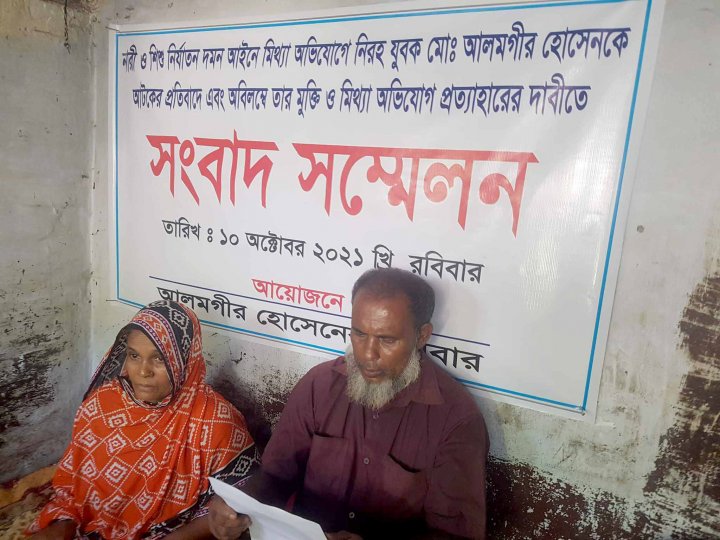 এ সময় উপস্থিত ছিলেন আলমগীর হোসেনের মা জাহানারা বেগম ও এলাকার গণ্যমান্য ব্যক্তিরা। তাঁরা অবিলম্বে ভিত্তিহীন মামলাটি প্রত্যাহার ও আটক আলমগীরের মুক্তি দাবি করেন।