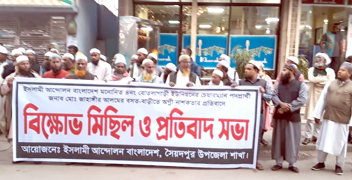 সৈয়দপুর ৪ নং বোতলাগাড়ী ইউপি পদপ্রার্থীর বাড়িতে অগ্নি-নাশকতার প্রতিবাদে বিক্ষোভ মিছিল ও প্রতিবাদ সভা