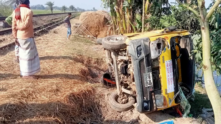 ঘটনার প্রত্যক্ষদর্শী জিহাদ হাসান বলেন, একটি পিকআপ দুপুর ১টার দিকে হাবড়া থেকে ঝাউপাড়া গ্রামের দিকে যাচ্ছিল। এদিকে রাজশাহী থেকে ছেড়ে আসা পার্বতীপুরগামী ‘তিতুমীর এক্সপ্রেস’ ট্রেনটি পার্বতীপুর-ফুলবাড়ী রেলপথের ই-১৭১ নম্বর লেভেল ক্রসিং অতিক্রম করার সময় পিকআপটির সঙ্গে ধাক্কা লাগে। এ সময় দুমড়ে মুচড়ে গিয়ে ২০ মিটার দুরে ছিটকে পড়ে পিকআপ। এতে ঘটনাস্থলেই মিলন নামের ওই যুবকের মৃত্যু হয়। এ সময় গুরুতর আহত হন একই গ্রামের আনোয়ার হোসেনের ছেলে মাসুম ও দেলোয়ার হোসেন। পরে স্থানীয়রা আহতদের উদ্ধার করে পার্বতীপুর উপজেলা স্বাস্থ্য কমপ্লেক্স হাসপাতালে নিয়ে যায়। পরে সেখানকার কর্তব্যরত চিকিৎসক উন্নত চিকিৎসার জন্য তাদের দিনাজপুর এম আব্দুর রহিম মেডিকেল কলেজ হাসপাতালে পাঠান।