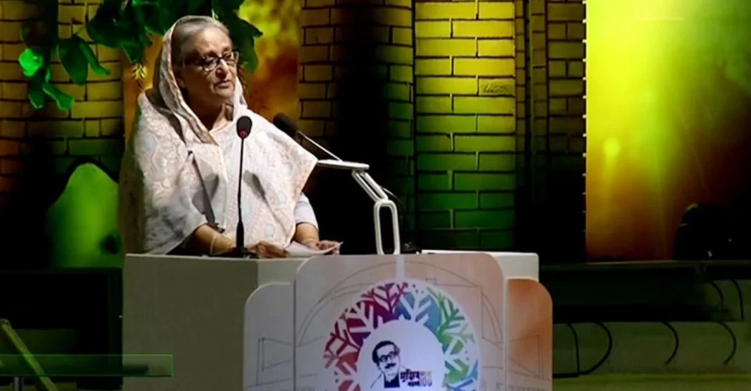 শেখ হাসিনা বলেন, বাংলাদেশ আজ উন্নয়নশীল দেশের মর্যাদা পেয়েছে। আমরা অবশ্যই বাংলাদেশকে উন্নত ও সমৃদ্ধ সোনার বাংলায় পরিণত করব। এটা আমাদের অঙ্গীকার।
