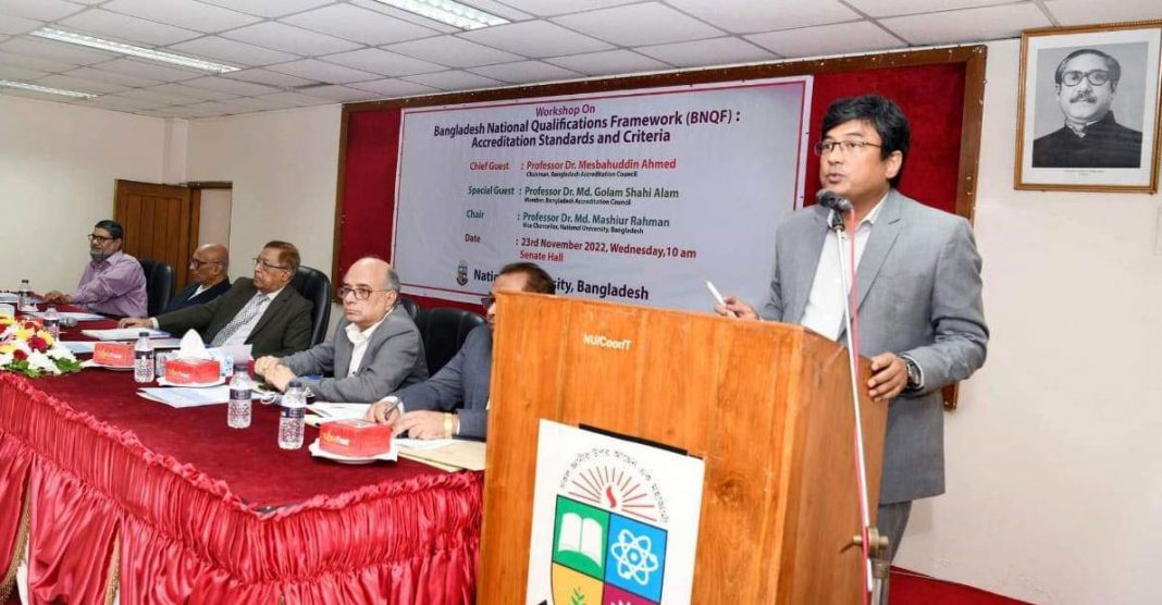 চিকলী ডেস্ক : বুধবার (২৩ নভেম্বর) গাজীপুরে জাতীয় বিশ্ববিদ্যালয়ের সিনেট হলে ‘বাংলাদেশ ন্যাশনাল কোয়ালিফিকেশনস ফ্রেমওয়ার্ক (বিএনকিউএফ): অ্যাক্রেডিটেশন স্ট্যান্ডার্ডস অ্যান্ড ক্রাইটেরিয়া’ শীর্ষক ওয়ার্কশপে তিনি এসব কথা বলেন।