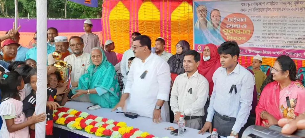 সৈয়দপুর উপজেলা নির্বাহী অফিসার (ইউএনও) ফয়সাল রায়হানের সভাপতিত্বে ট্রফি বিতরণ অনুষ্ঠানে স্বাগত বক্তব্য দেন সৈয়দপুর উপজেলা শিক্ষা অফিসার মো. জাকির হোসেন।
