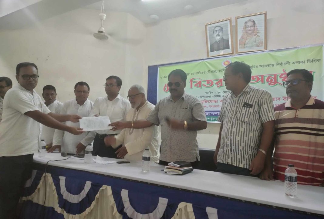 ডোমারে উপজেলা পরিষদ হলরুমে চেক বিতরণ