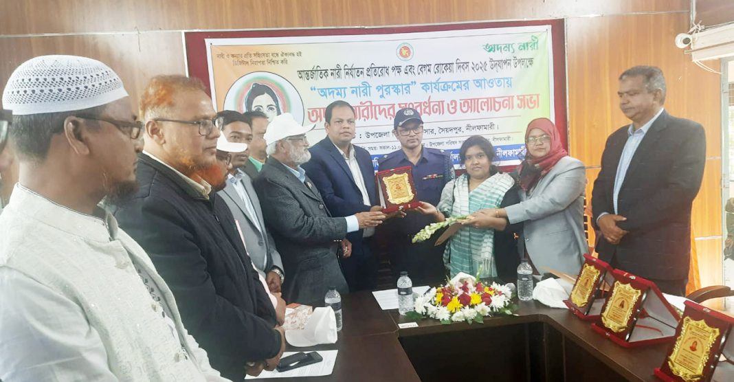 চিকলী নিউজ : আন্তর্জাতিক নারী নির্যাতন প্রতিরোধ পক্ষ এবং বেগম রোকেয়া দিবস ২০২৫ উদযাপন উপলক্ষে মঙ্গলবার (৯ ডিসেম্বর) সৈয়দপুরে পাঁচজন অদম্য নারীকে সংবর্ধনা প্রদান ও এক আলোচনা সভা অনুষ্ঠিত হয়েছে। উপজেলা প্রশাসন ও উপজেলা মহিলা বিষয়ক কর্মকর্তার কার্যালয়ের যৌথ উদ্যোগে ওই সংবর্ধনা ও আলোচনা সভার আয়োজন করা হয়।