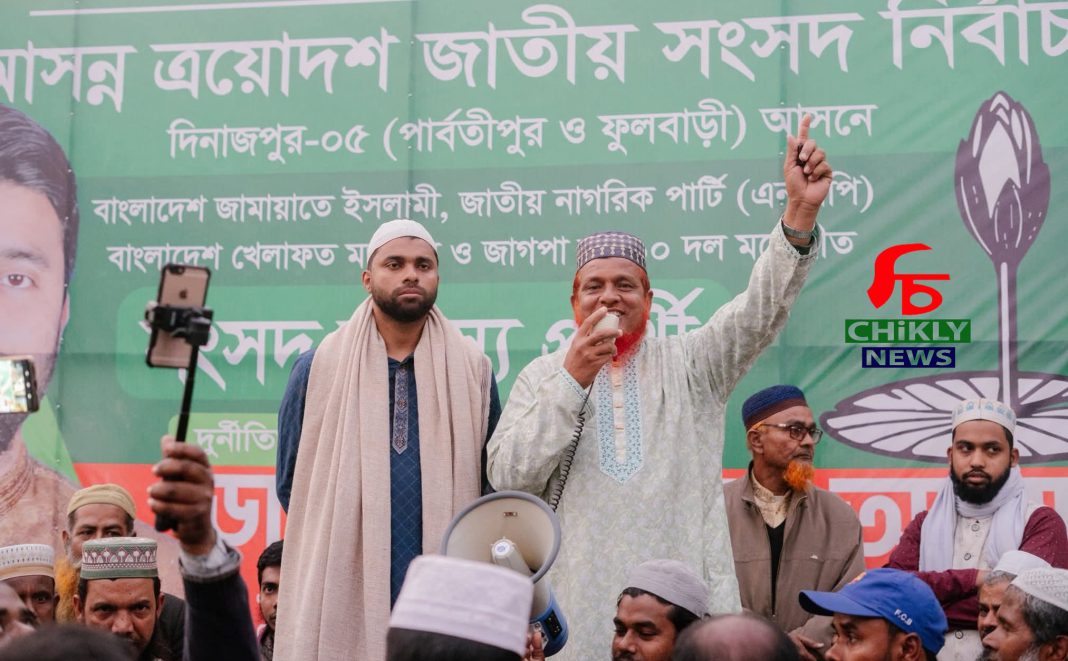 দিনাজপুর-৫ (ফুলবাড়ী-পার্বতীপুর) এলাকার বিভিন্ন জনসভা ও গণসংযোগে দেখা যাচ্ছে এক অভূতপূর্ব দৃশ্য। জামায়াতের শক্তিশালী সাংগঠনিক শক্তিকে কাজে লাগিয়ে আনোয়ার হোসেন নিজে ভোটারদের দ্বারে দ্বারে যাচ্ছেন এবং এনসিপি প্রার্থীর হাতকে শক্তিশালী করার আহ্বান জানাচ্ছেন।